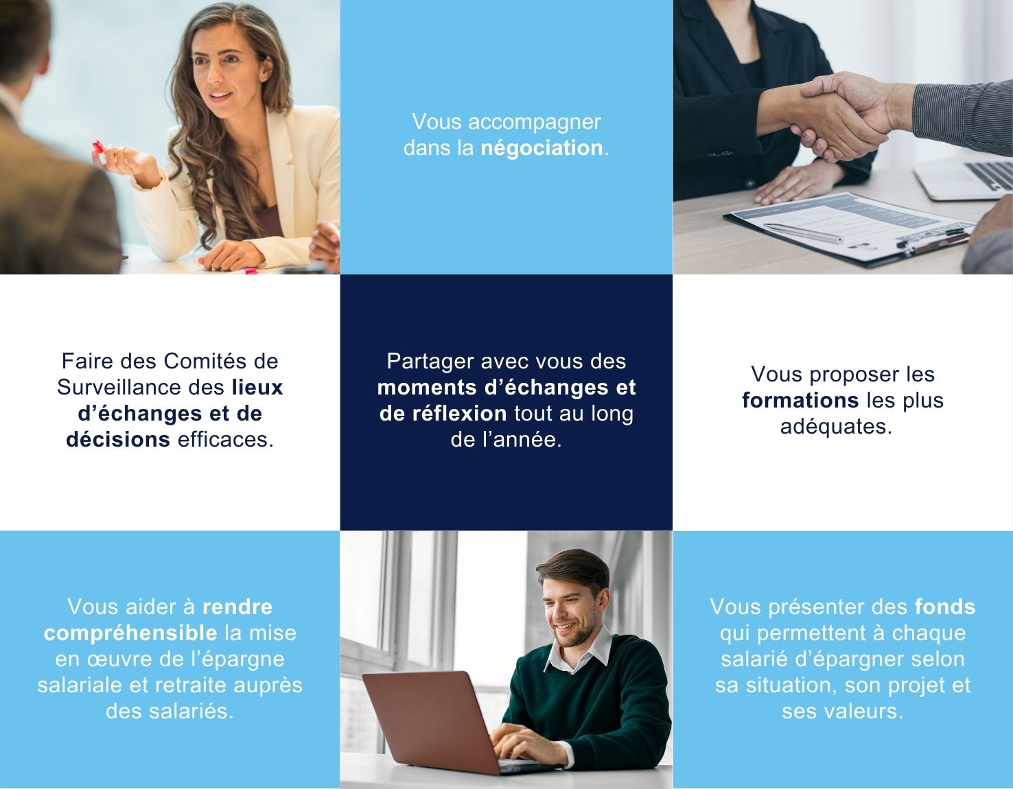 Les équipes d’Amundi Epargne Salariale et Retraite sont engagées aux côtés des représentants des salariés d’entreprises.
